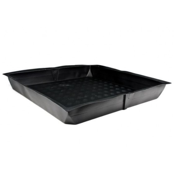 Bandeja cuadrada con borde elevado de 12 cm. Hecha de plástico reciclado muy duradero.Base: 100 x 100 cm.Altura: 12 cm