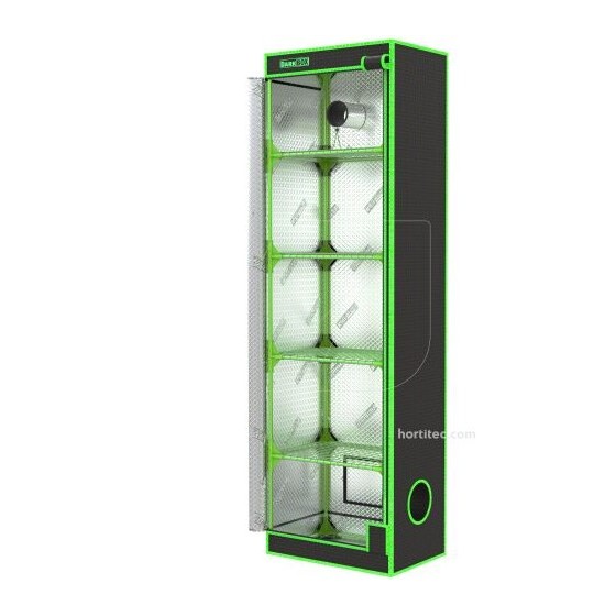 El Dark Box Propagator es un armario de propagación compacto y funcional, diseñado específicamente para la germinación y el desarrollo de esquejes. Su estructura con baldas lo convierte en una solución ideal para maximizar el espacio disponible, permitiendo un entorno de cultivo controlado en todo momento.