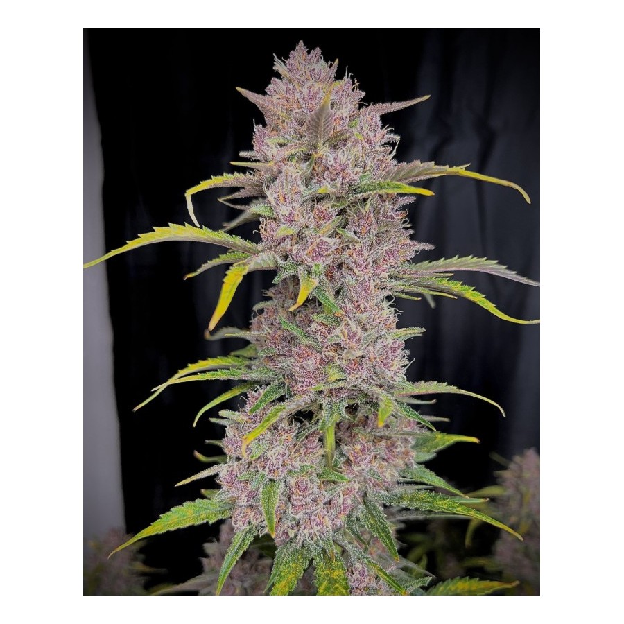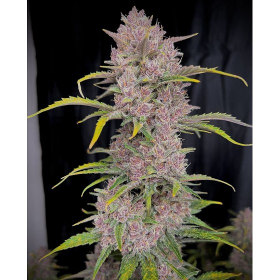 Descripción del cogollo La perfección en forma de cogollos. Los cogollos de la Banana Purple Punch tienen pelos de color naranja brillante y una hermosa mezcla de tonos púrpura, rosa y magenta que se cubren completamente de tricomas en el momento de la cosecha. Los cogollos de tamaño medio crecen extremadamente densos y apilados unos sobre otros, haciendo que la cola principal y las ramas laterales parezcan el rascacielos púrpura más alto que jamás hayas visto. El apetitoso olor a frutas tropicales hipnotizará tus fosas nasales incluso antes de que puedas abrirlas, una variedad realmente excepcional para los que buscan hacer el hachís y los extractos más sabrosos.Efecto Esta variedad no es para los débiles de corazón. Al principio, experimentarás un subidón alegre que te permite concentrarte y despejar la mente, pero no te precipites. La Banana Purple Punch Auto es una cepa enredadora y el efecto completo puede aparecer de golpe cuando menos lo esperas. Tras un par de caladas, el agradable subidón mental se convierte lentamente en un potente efecto sedante de larga duración que parece fundir todo tu cuerpo, aliviando el dolor, el estrés y los síntomas asociados a la pérdida de apetito, mientras te deja feliz y relajado. Esta cepa “nocturna” definitivamente te hace dormir, así que tómatelo con calma.Aspecto de la planta Esta variedad es muy fácil de cultivar y sin mucho esfuerzo revelará su linaje Indica y te mostrará de lo que es capaz. La Banana Purple Punch Auto puede alcanzar hasta 120 cm, pero crece gruesa y robusta, desarrollando una gruesa cola principal con múltiples ramas laterales cortas que crecen tan gruesas como el tallo principal y pueden soportar los cogollos de gran tamaño con facilidad. Debido a la herencia Indica, esta planta tiene un corto espacio internodal que da la impresión de que en cada rama individual está creciendo un enorme cogollo. Las hermosas flores de color lila oscuro contrastan perfectamente con las hojas de abanico anchas que se desvanecen en un hermoso tono verde claro al final de la floración.
